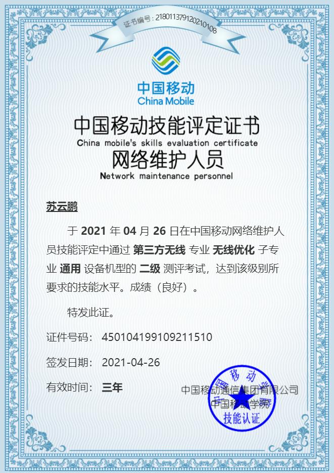 工作描述:1、配合外场测试核查告警、指标情况、相关参数等