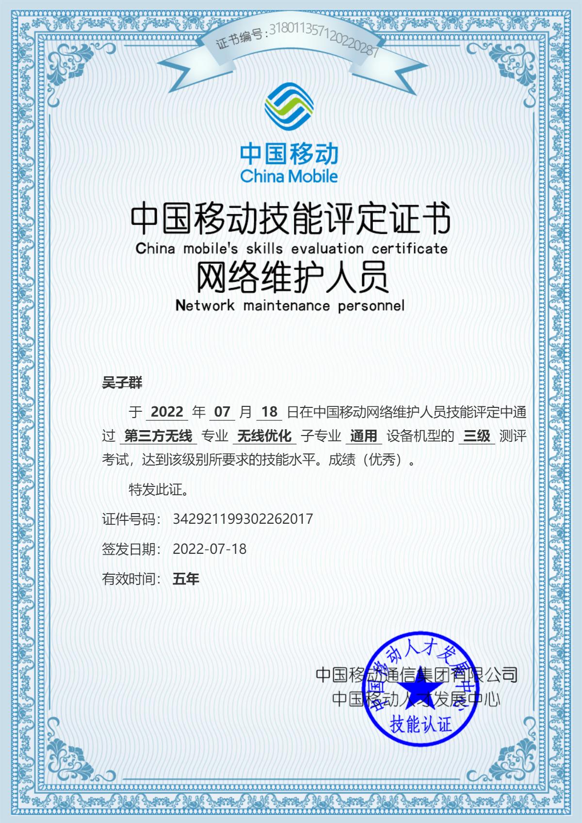 从事移动、电信(中兴设备)网络优化8年,前台一年,工程后台两年,专项5年(电联,移动三方优化)熟悉45G无线网络优化。