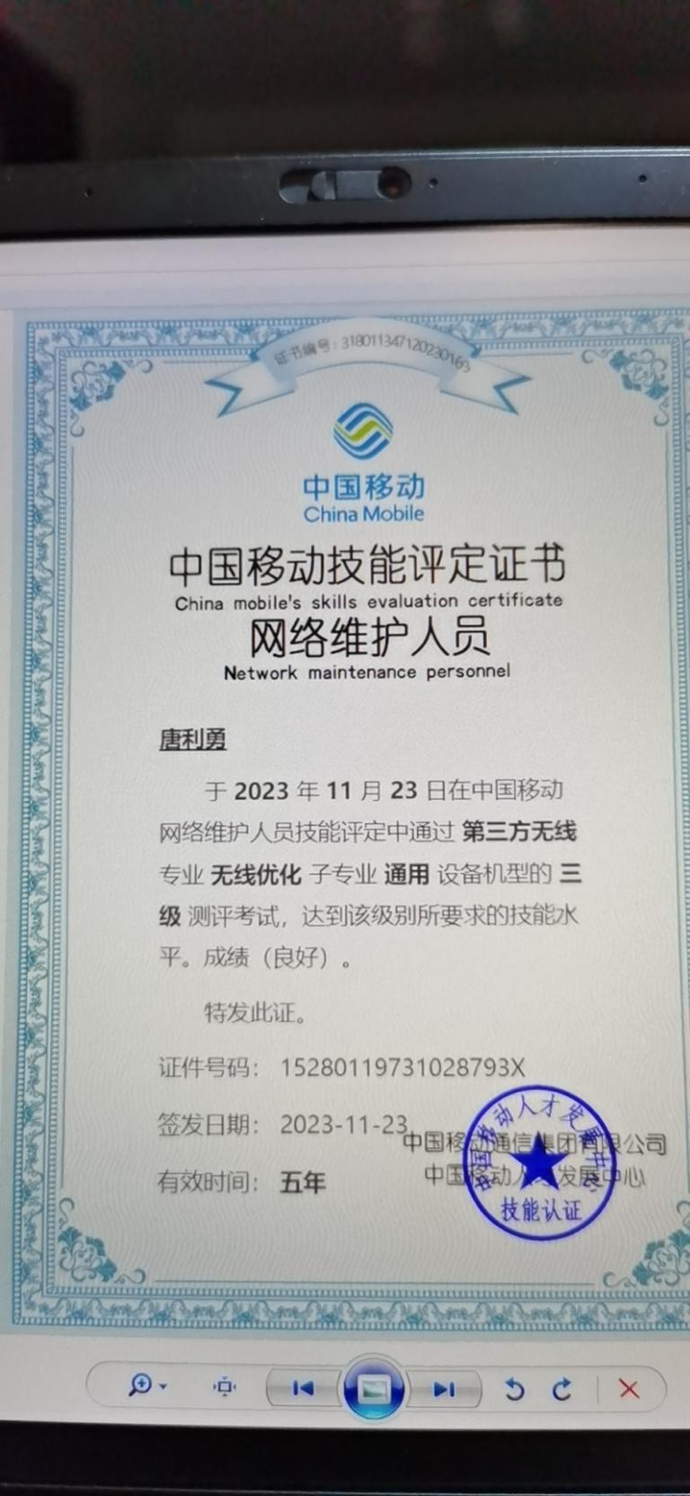 中级职称(获得国家中级通信工程师)