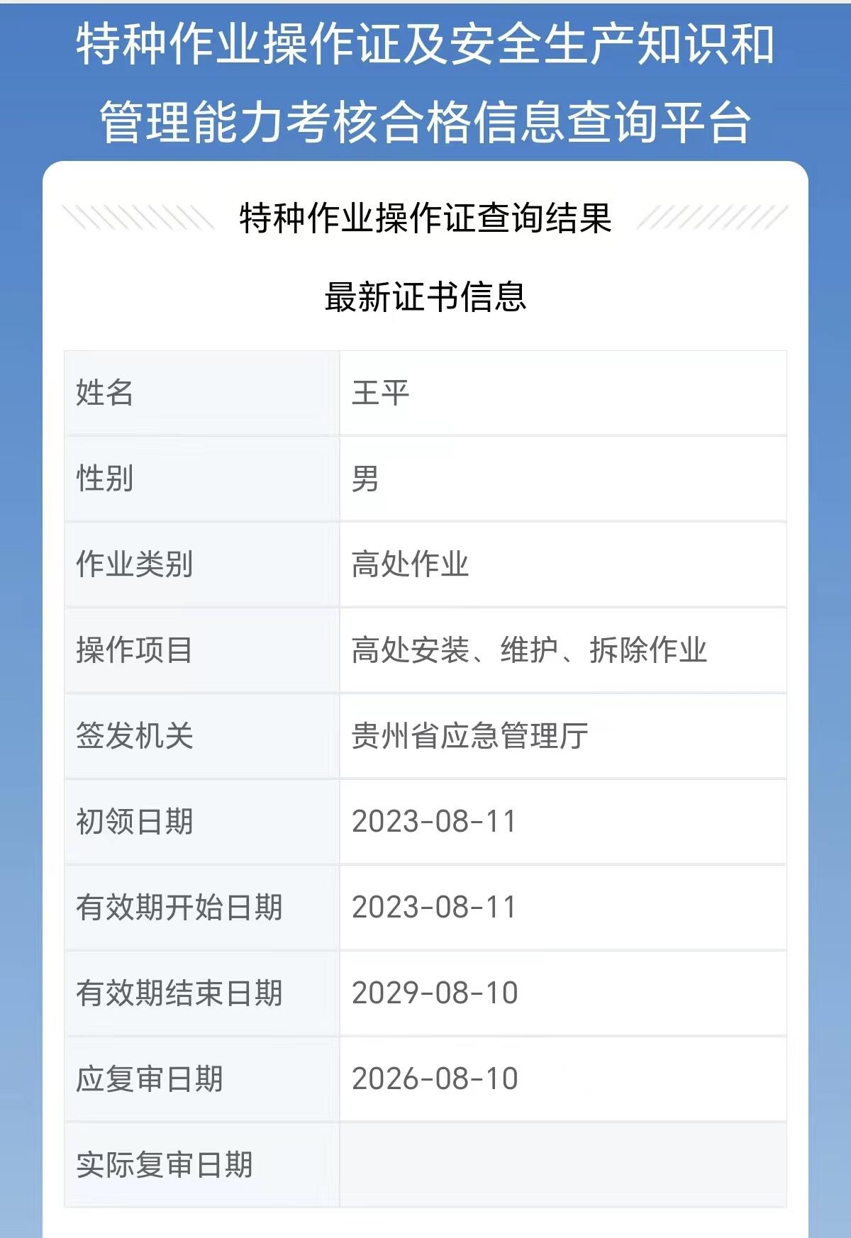 2023年8月5日在贵州省凯里市参加高处作业培训 |