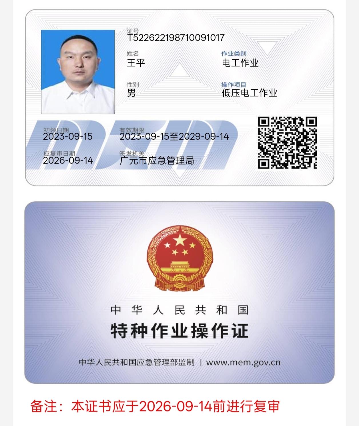2023年9月5日在四川省广元市参加电工作业培训 |