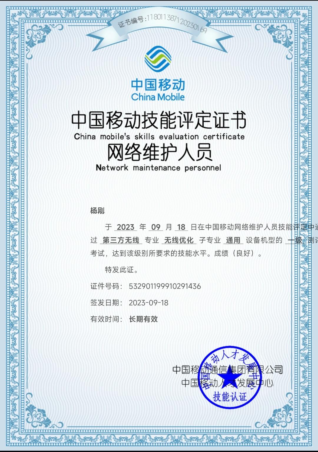 证书名称: