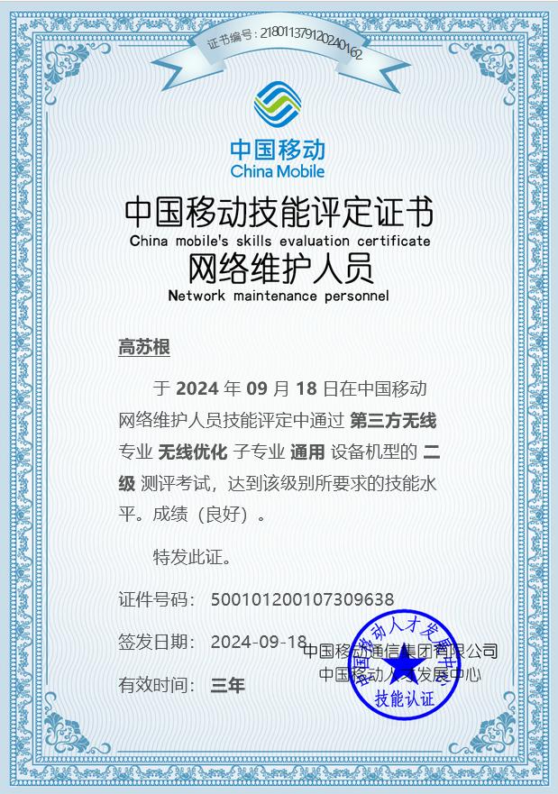 工作描述:负责承接并落实客户交办的各项工作任务,涵盖路测log测试与分析、信令分析、各类大型活动保障、投诉处理、低分处理、质差小区处理,微网格管理优化、低满核查处理、信号升格测试、站点合并、站点搬迁、新建站点具体位置等现场勘察工作,并按要求完成相关勘察报告的编制与输出。