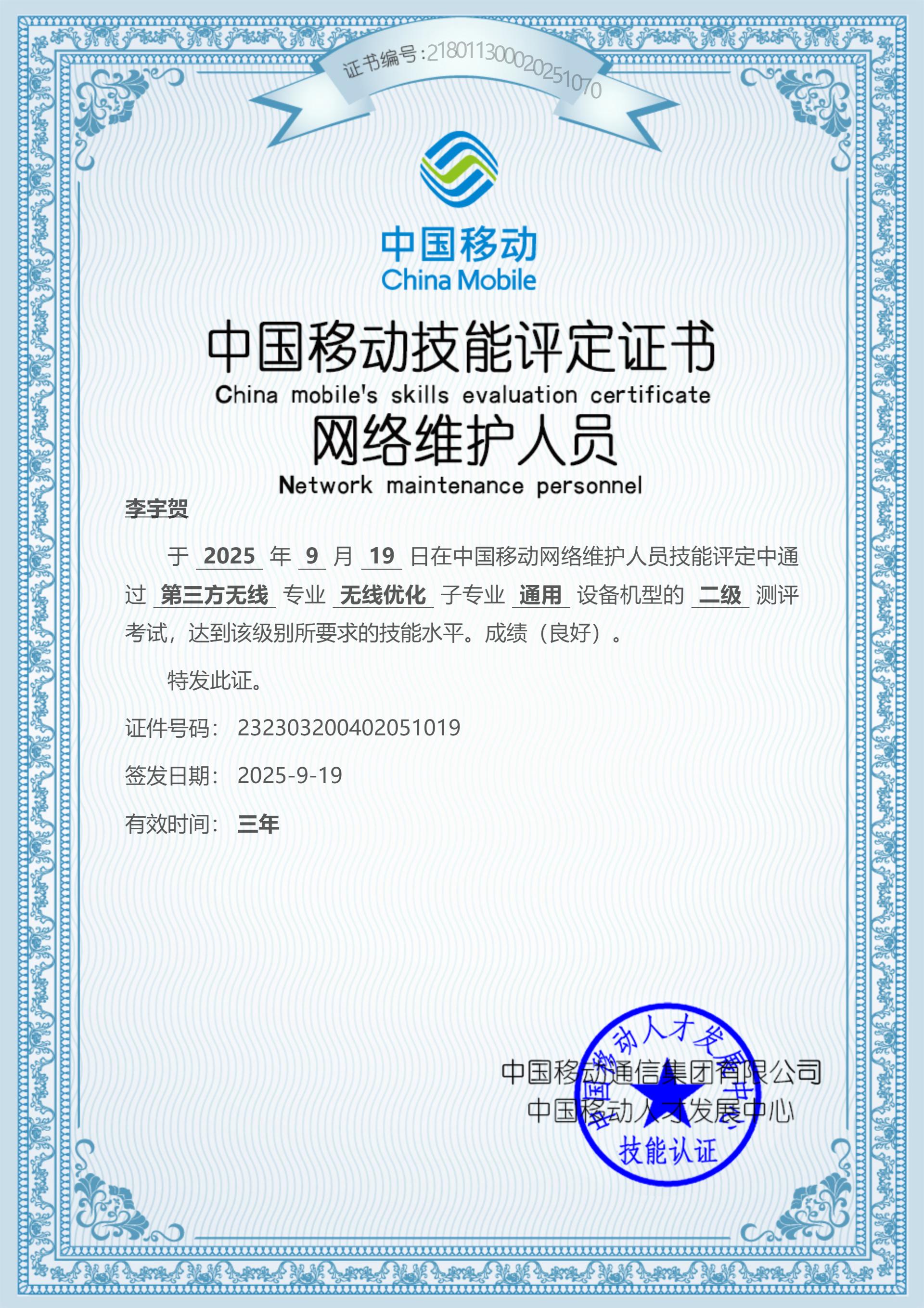 有华为中级认证,移动L3认证,过日常项目和专项保障