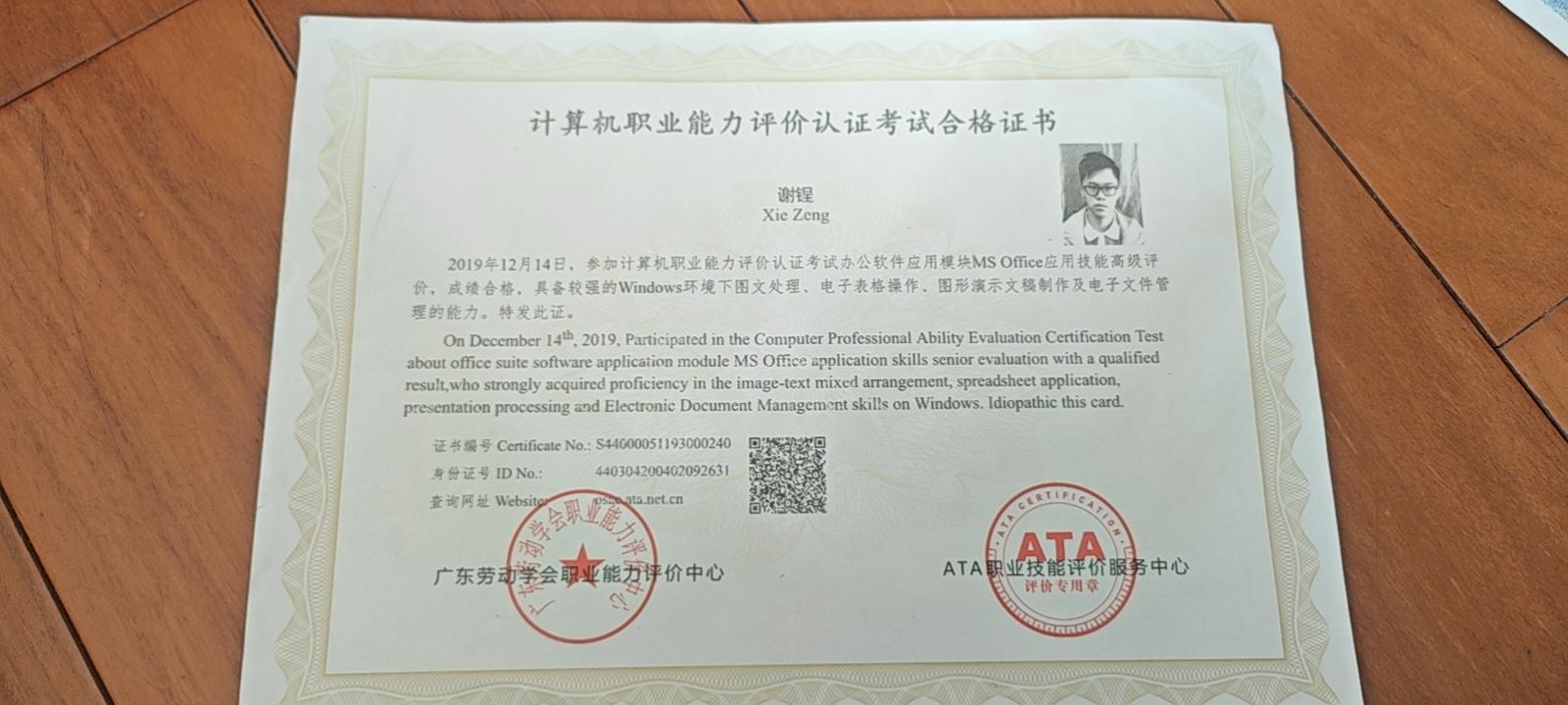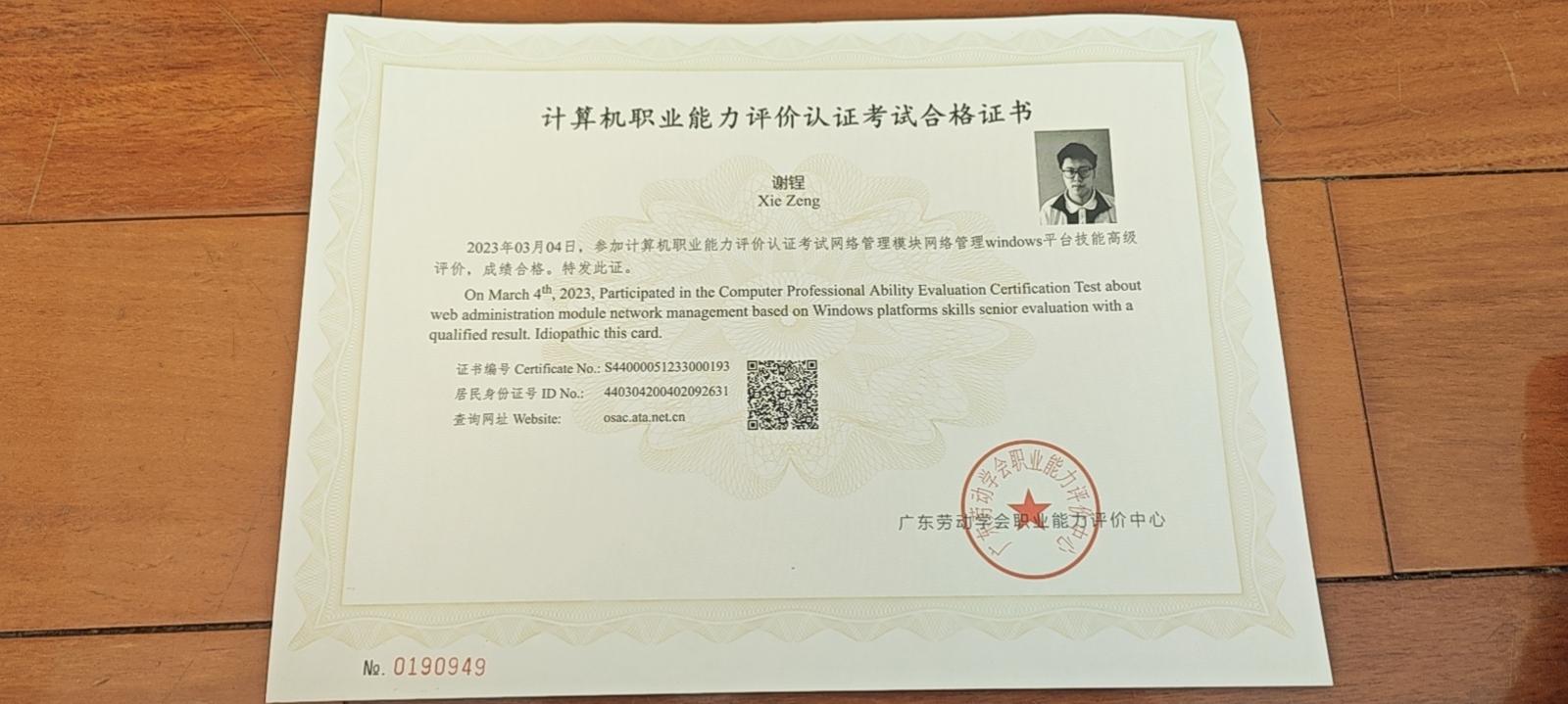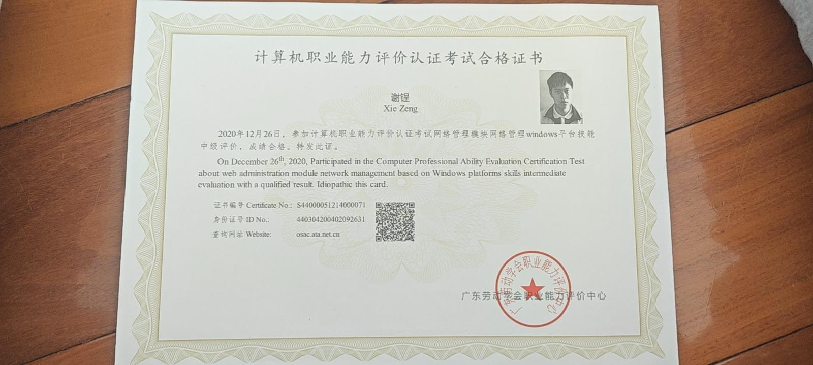 证书名称: