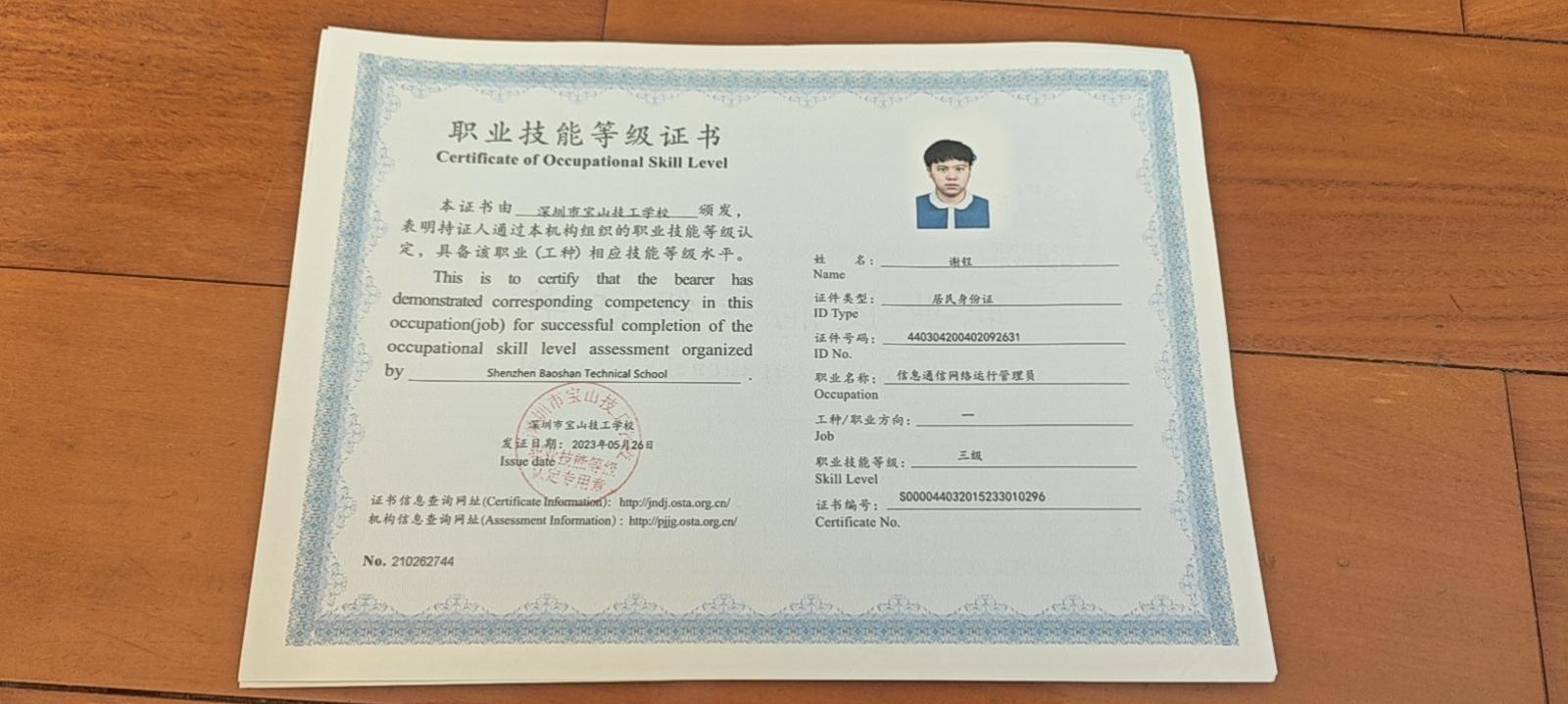 职业技能等级证书
