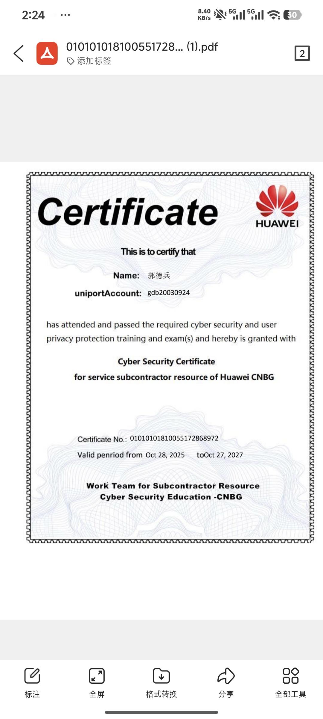 证书名称:
