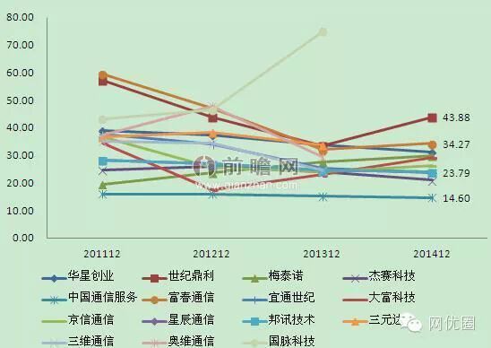 结合网络优化服务及设备供应商服务企业毛利率水平来看,行业整体处于毛利较高水平。从年度盈利能力来看,自2011-2013年,网络优化产业整体处于下降趋势,自2013年底-2014年以来,行业的毛利率整体有所回升,综合来看大部分企业毛利率在30%左右。