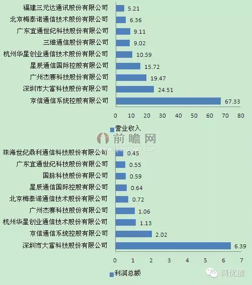 图表3:无线通信网络优化代表企业营业收入和利润规模排名(单位:万元)